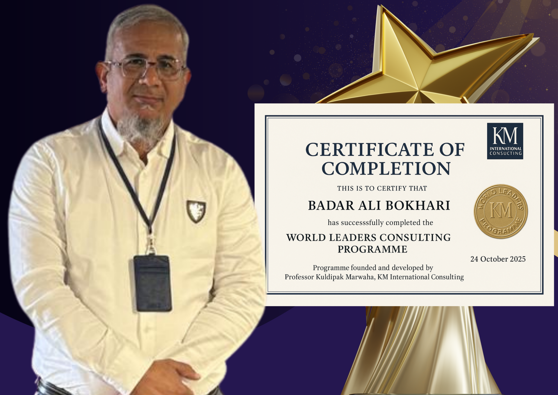 Mr. Badar Ali Bokhari is a distinguished graduate for the World Leaders Consulting Programme, where he achieved an exceptional overall performance and earned a Distinction for his excellence, commitment, and leadership capability.